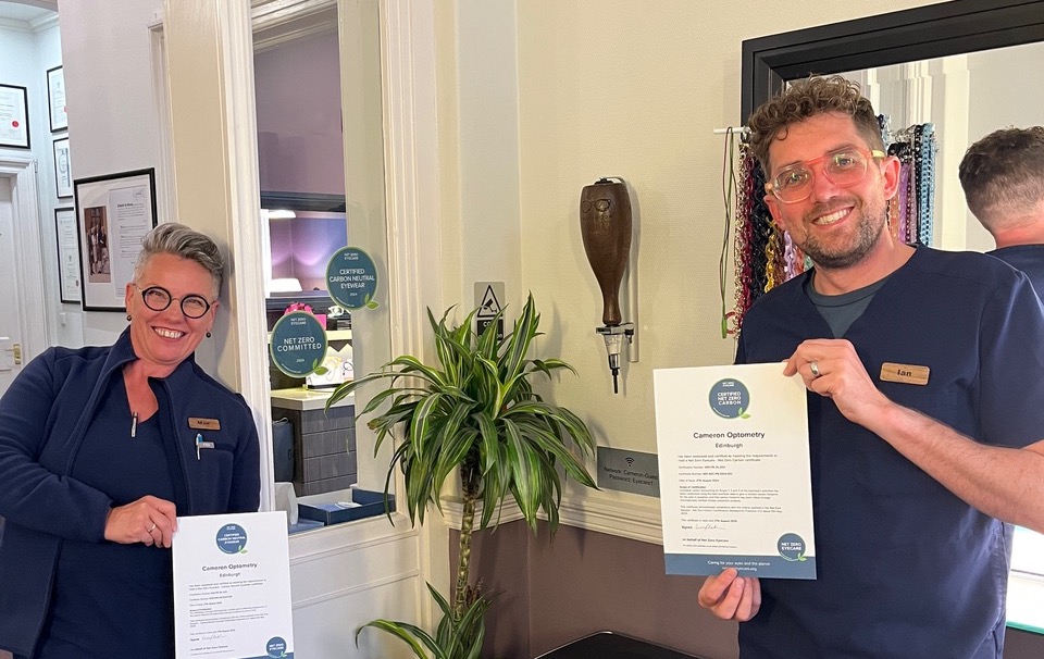 Mae Douglas, Optical Assistant at Cameron Optometry who undertook the challenge of the practice’s carbon accounts, added: “When I was tasked with carbon accounting for Cameron Optometry, I had little idea of what was involved. Through my work to achieve Net Zero Carbon status for the practice, I now appreciate the many aspects of the business that contribute to our carbon footprint and am excited to explore ways of reducing that footprint to minimize our overall impact on the environment.”